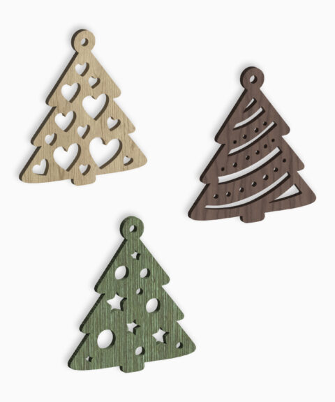 Dekorationen fås i to størrelser (20 eller 30 cm i højden) og kan vælges i enten lys eg, mørk valnød eller gennemfarvet sort MDF. De naturlige træsorter fremhæver detaljerne i designet og giver en levende overflade med smuk struktur og varme toner.